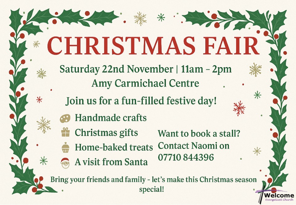It is just under a month to go until the Christmas Fair! Please get in touch if you’d like a stall!